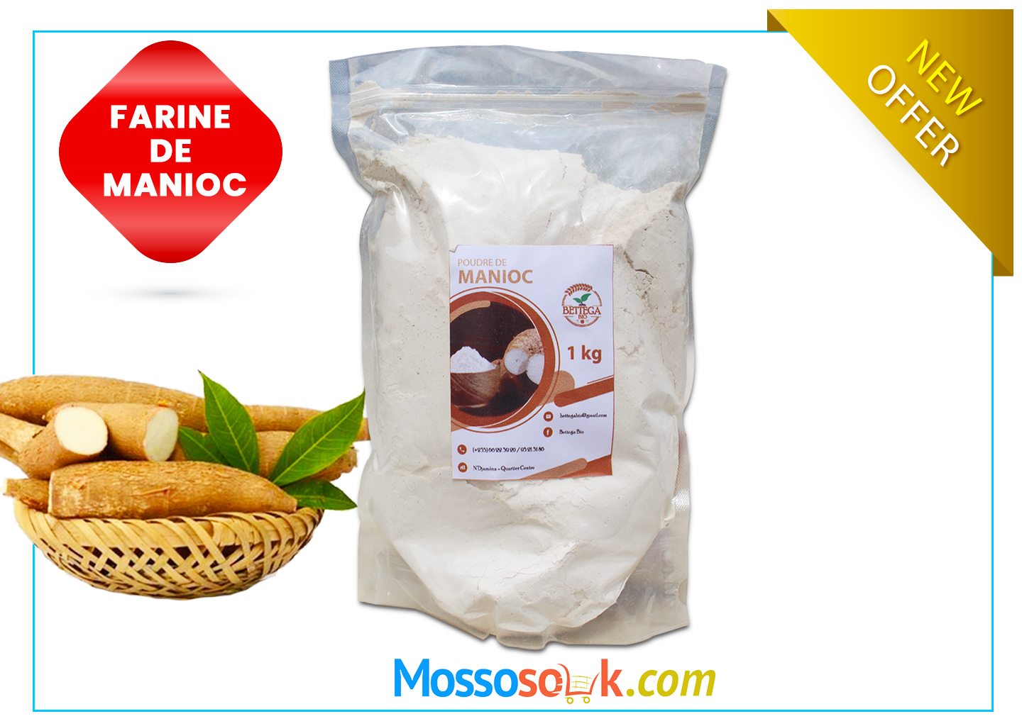 La farine de manioc est particulièrement riche en amidon. Très riche en glucides, le manioc est un aliment énergétique. Disponible en sachet de 1kg.
