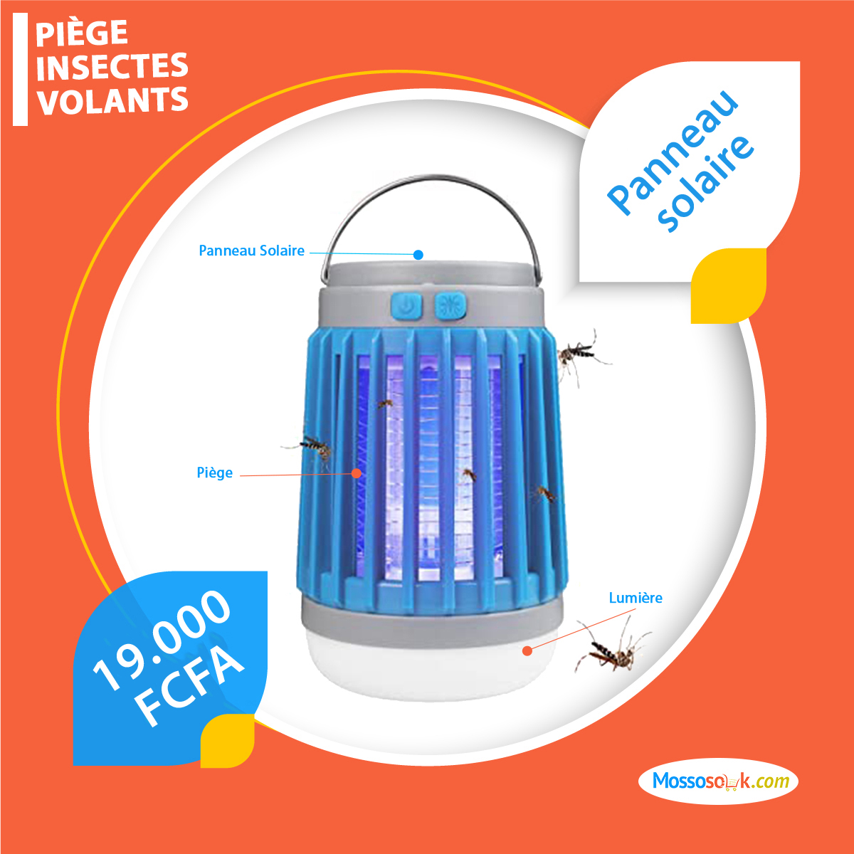 Le piège à insectes est conçu pour éliminer tous les insectes envahisseurs. La lumière bleue attire les insectes volants aux alentours vers la grille métallique électrique et et les élimine par une décharge électrique.